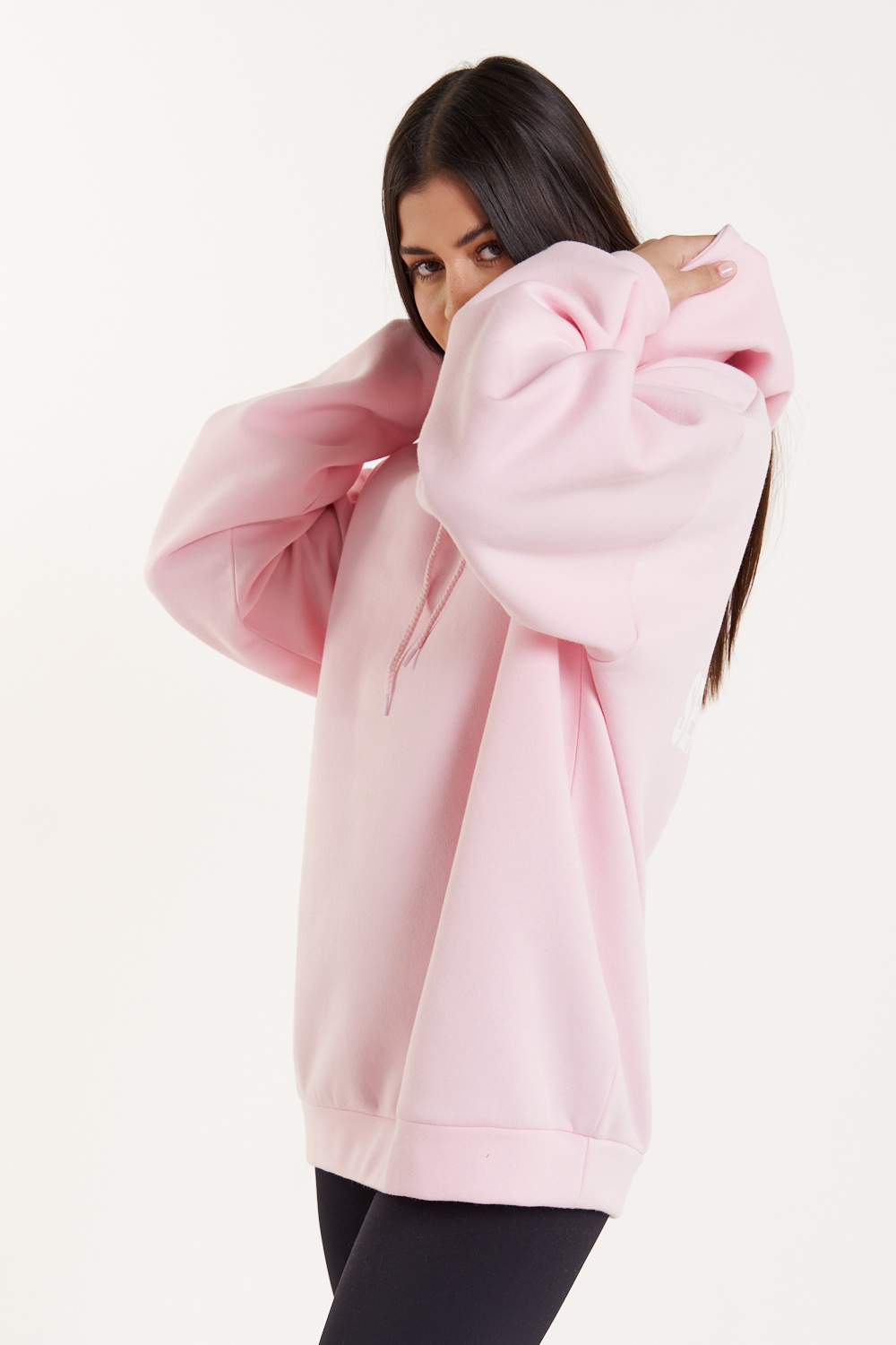 Unisex oversized φούτερ μπλούζα με κουκούλα, μακριά μανίκια και μεγάλο τύπωμα στην πλάτη. Η μπάσκα και οι μανσέτες είναι από ριπ.